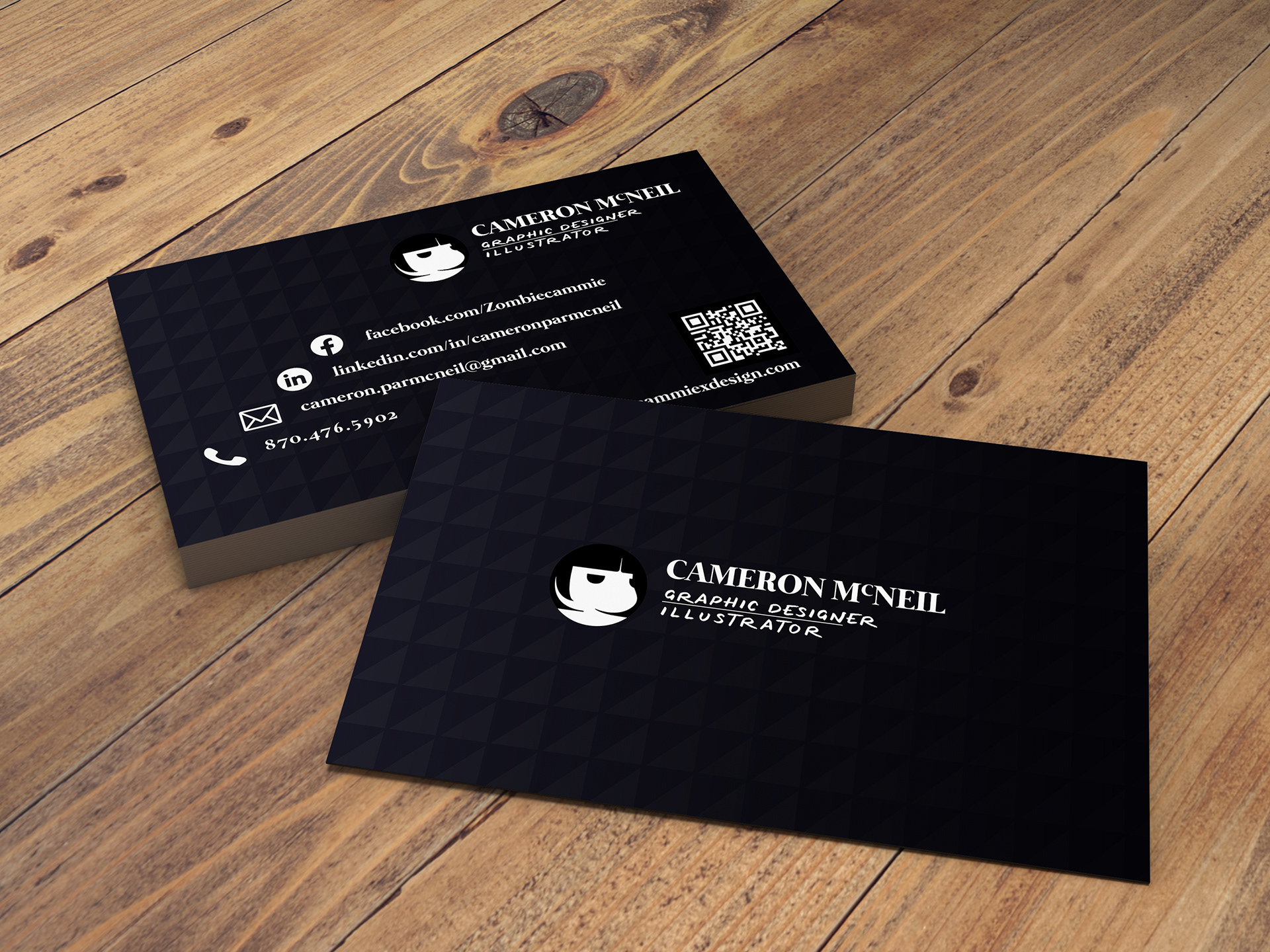 Here's a business card mockup I made for myself. No physical versions yet, but I think I'm happy enough with it to get at least 50 printed.
