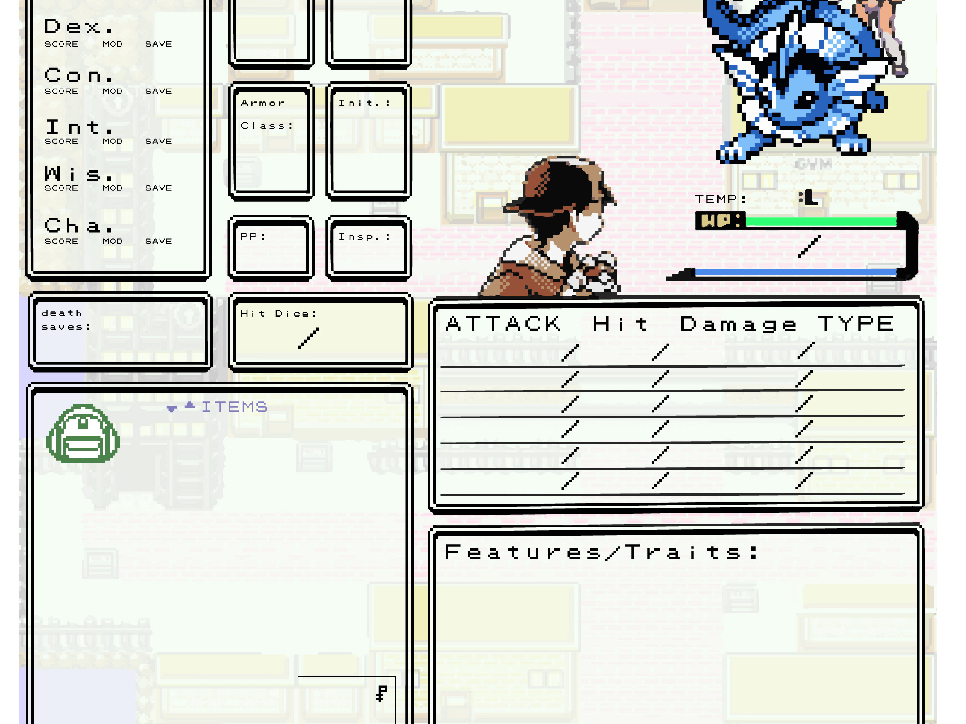 D&D game boy color pokemon style character sheet